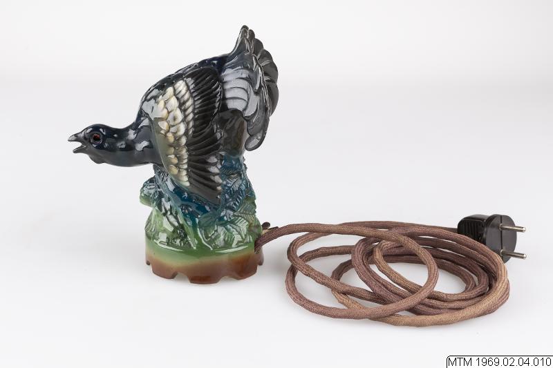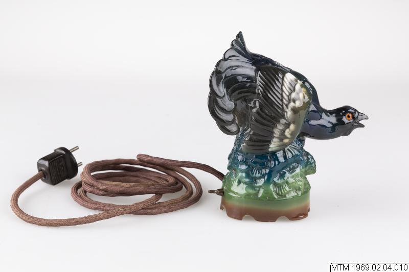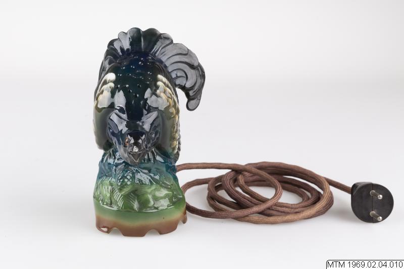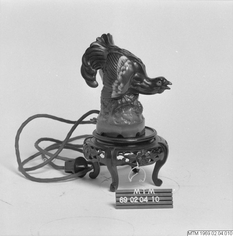 Lampa för nattduksbord. Av målat porslin med träfot. (foten saknas). Elektrisk. Med en glödlampa. 220 Volt.