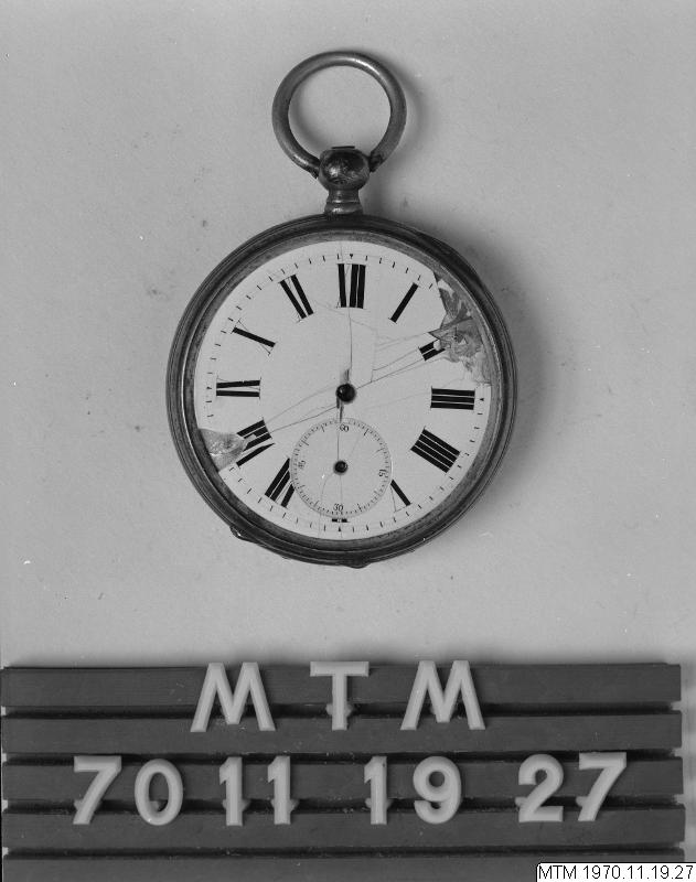 - Fickur, cylinderverk märkt "Patent Lever", fabrikat okänt. Glas och 3 stycken visare saknas. Skadad emaljurtavla. Nummer i boetten 66127. Urnyckelsuppdrag bak i boetten, utan nyckel. Innerboetten präglad PATENT LEVER. Guillockerad baksida.