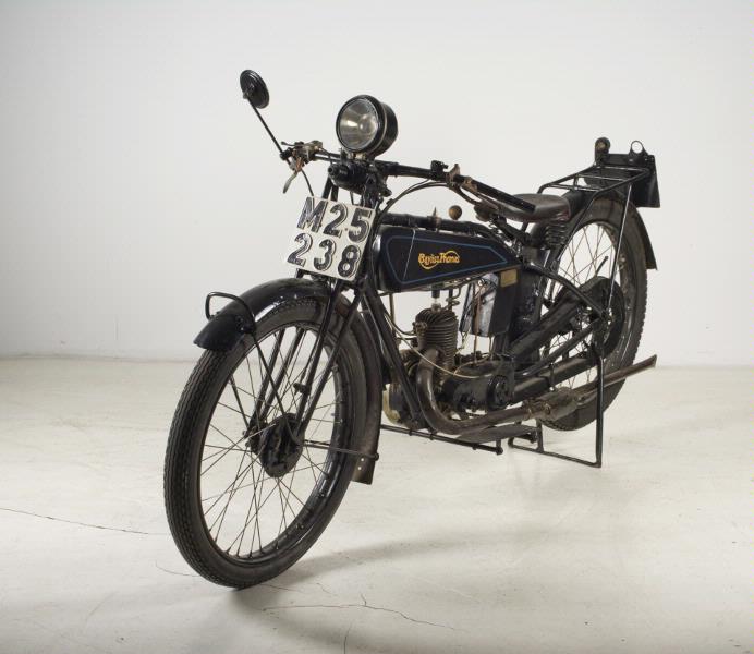 - Motorcykel. Fabrikat Bayliss-Thomas, år 1926, England. Villiers encylindrig 2-taktsmotor med tvärspolning på 147 cc. Cyl.diam 55 mm. Slaglängd 62 mm. Effekt 3 hk vid 3500 rpm. 2 växlar. Tändning via svänghjulsmagnet. Vikt 75 kg. Registreringsnummer M 25238. Sista besiktning 14/1 1955. Den 2/8 1984 behandlat med Valvoline/Tectyl motorkonserveringsolja (PUH). Enligt uppgift delvis ombyggd av ägaren: "t ex kedjedrift istället för kilremsdrift, alla glidlager ändrades om i vevhus, och i växellåda och är försedd med extra smörjning". Strålkastare av märket Bosch. Gummit på fotstöden saknas. Ett något buckligt signalhorn av mässing finns i mtmk 02b.