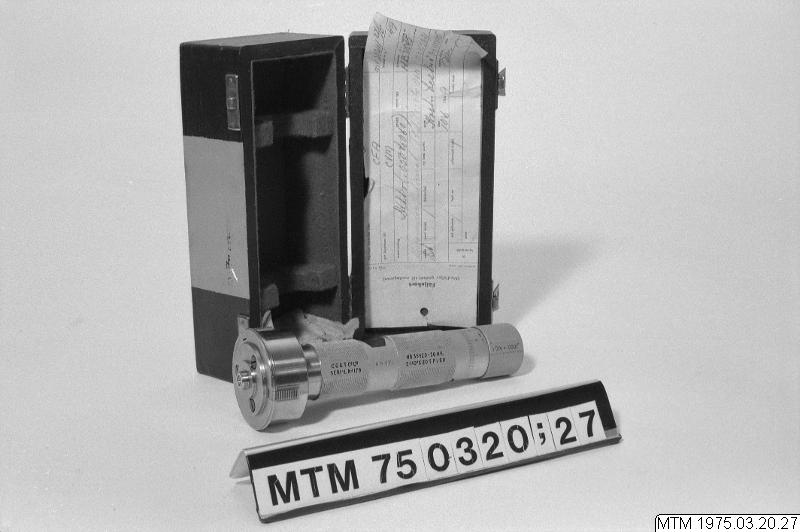 Mikrometer i svart låda med blått foder. Märkt: HB 35520-36HH. 2-110"x20TPI.RH.