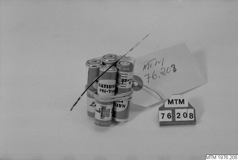 Batterier, 1,5V transistorbatterier. Avföres p.g.a. frätskador 1979-11-09 Per-Inge Lindquist.