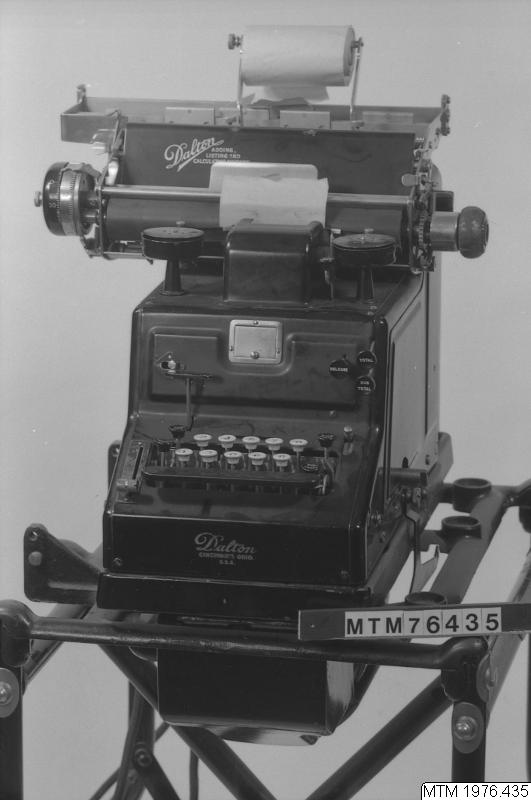 Bokföringsmaskin, eldriven, med stativ. 1930-talet. Fabrikat Dalton, USA, serienr 4-109279. Avvecklas enligt nämndbeslut från 1992.