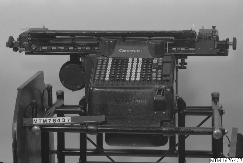 Bokföringsmaskin, eldriven, med stativ. 1930-talet. Fabrikat Wanderer-Werke, serienr 14612. Avvecklas enligt nämndbeslut från 1992.