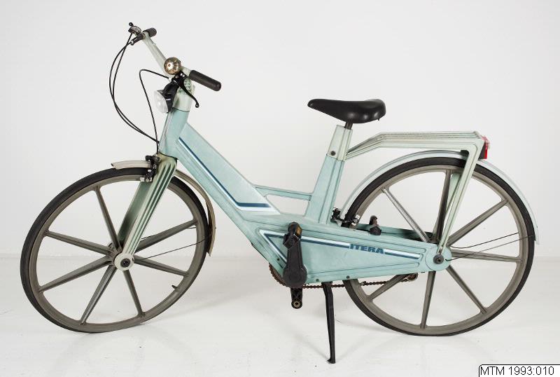 - Cykel: plastcykeln ITERA i originalskick förutom ringklockan som har tidigare kastats av donatorn. Bifogad finns nyckel (1 st), broschyr och beskrivning till cykeln och växelnavet, samt köpbeviset från Obs! 21/7 1984. Då kostade cykeln 595:- kronor. Nyckeln ligger i kassaskåpet, övre arkivet. 3-växlad.