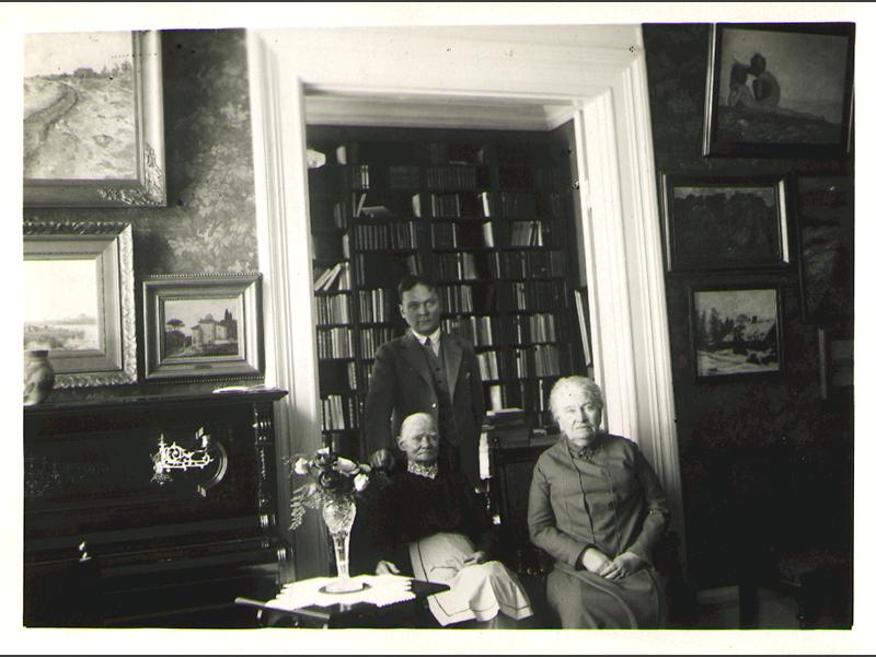 Visitkortsfotografi. Porträtt, interiörbild av Berndt Rutger i sällskap med modern Karna, samt oidentifierad kvinna.