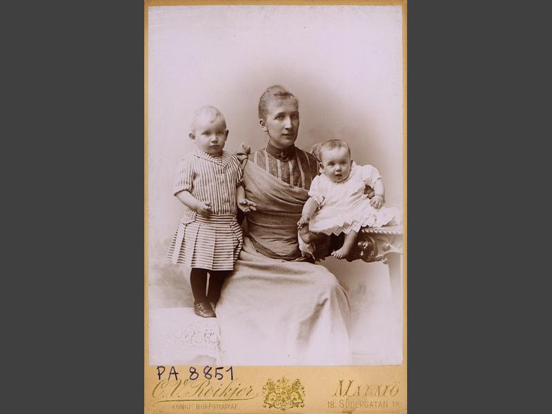 Visitkortsfotografi. Porträtt av Emma Adler med sina barn, Erik och Gunhild.