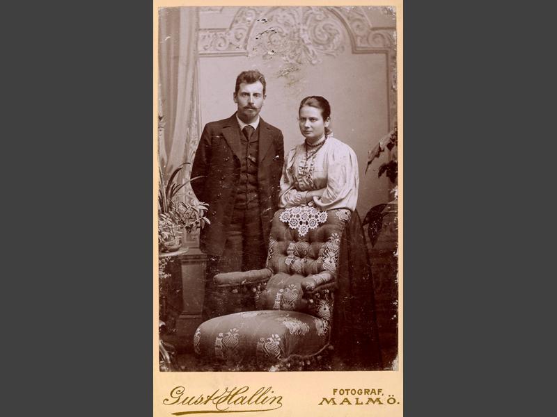 Visitkortsfotografi. Porträtt av konstnären Hjalmar Gans med systern Selma.