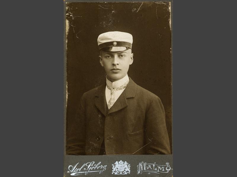 Visitkortsfotografi. Porträtt i halvfigur av textilhandelsgrossist Per Flensburg som student.
