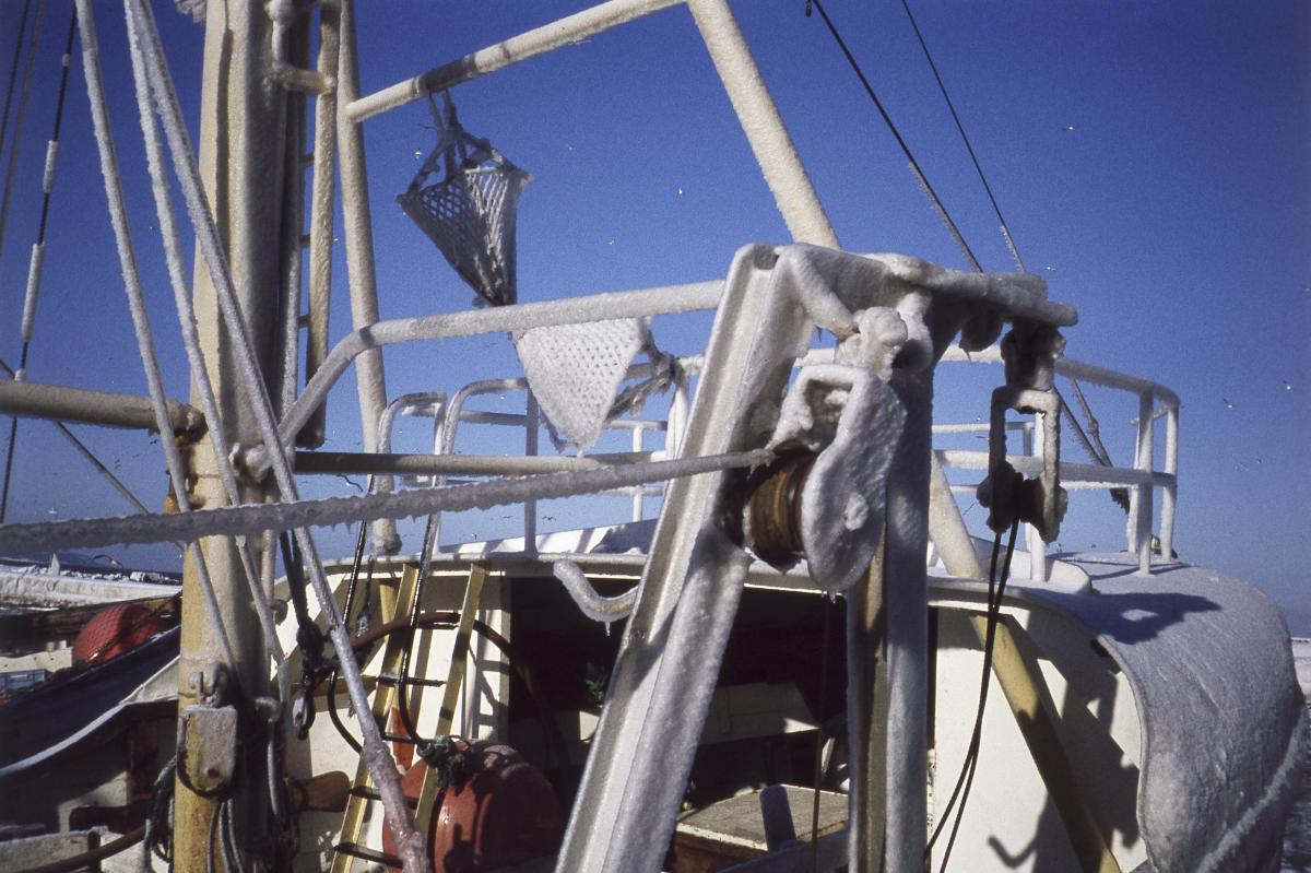 Fiskebåtar i Simrishamn, isvinter 1979