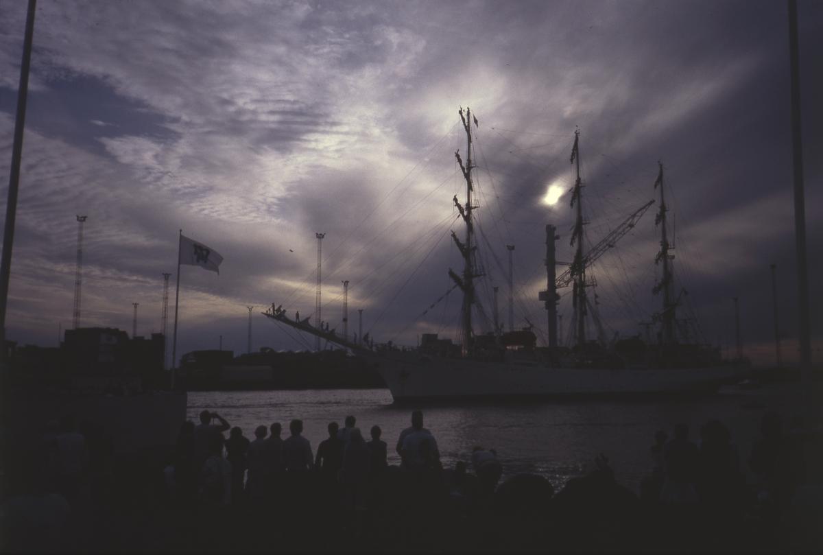 Fullriggaren "Mir", Sovjet, i Malmö hamn/Tall Ships Race i Malmö 1989