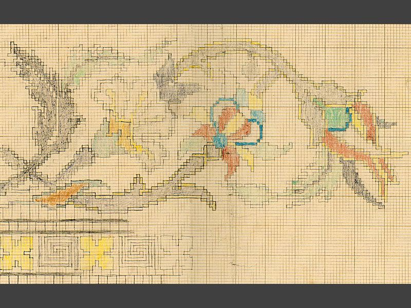 Vävmönster. Uppfodrade på vit foliokartong i pärmar.