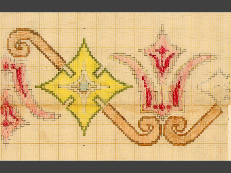 Vävmönster. Uppfodrade på vit foliokartong i pärmar.