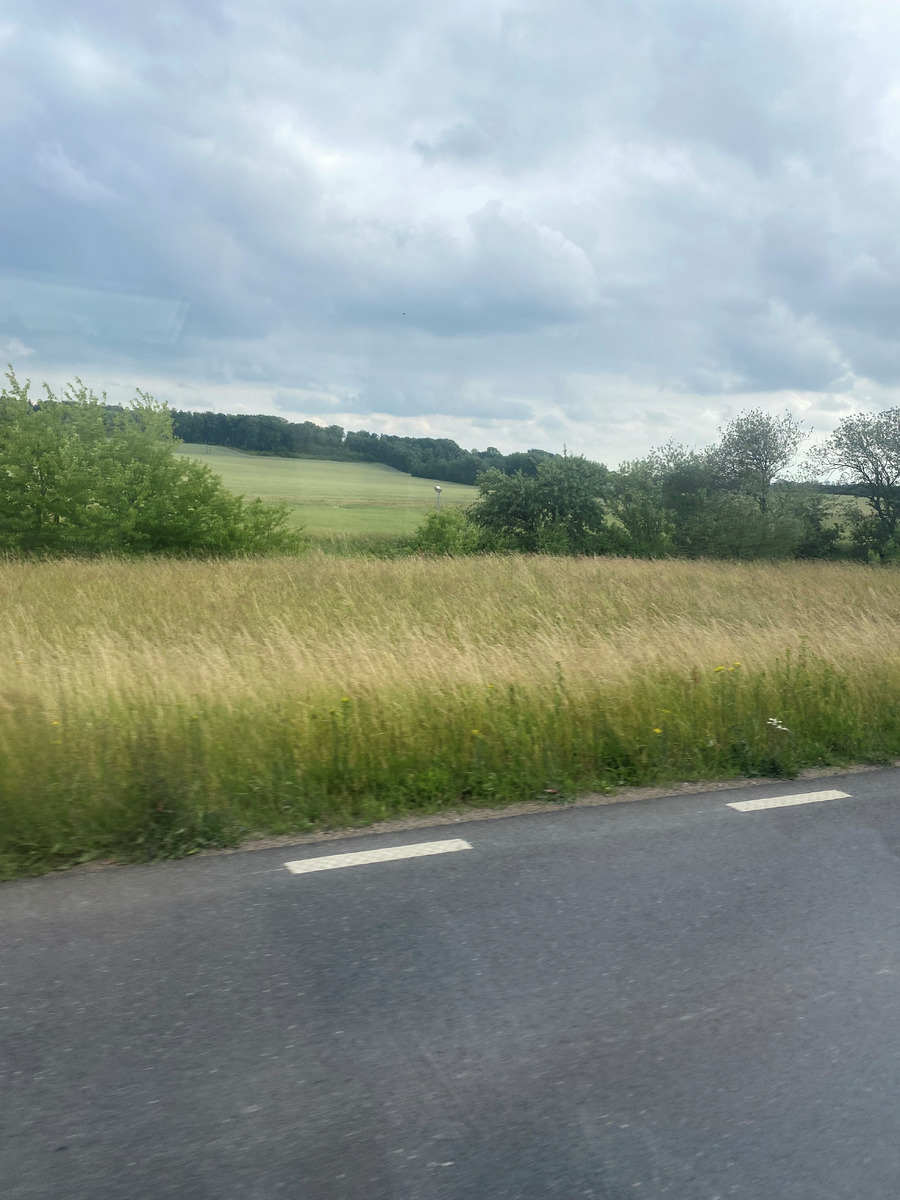 "Älskar landet i Sverige, även om det är molnigt för det mesta. Det här är landet på bussen på vägen till lund."