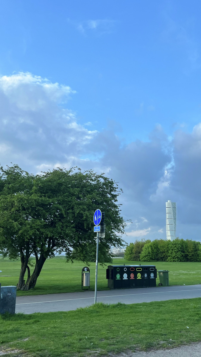 MM 063674:025:014 :: gångbana, turning torso, cykelbana, ung i sommar, sopsortering
