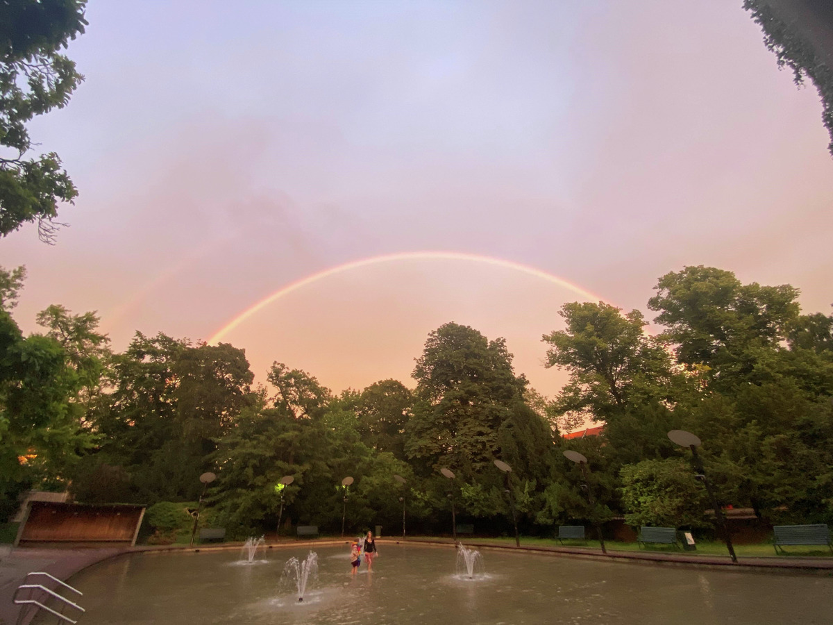 MM 063674:039:004 :: plaskdamm, regnbåge, park, ung i sommar