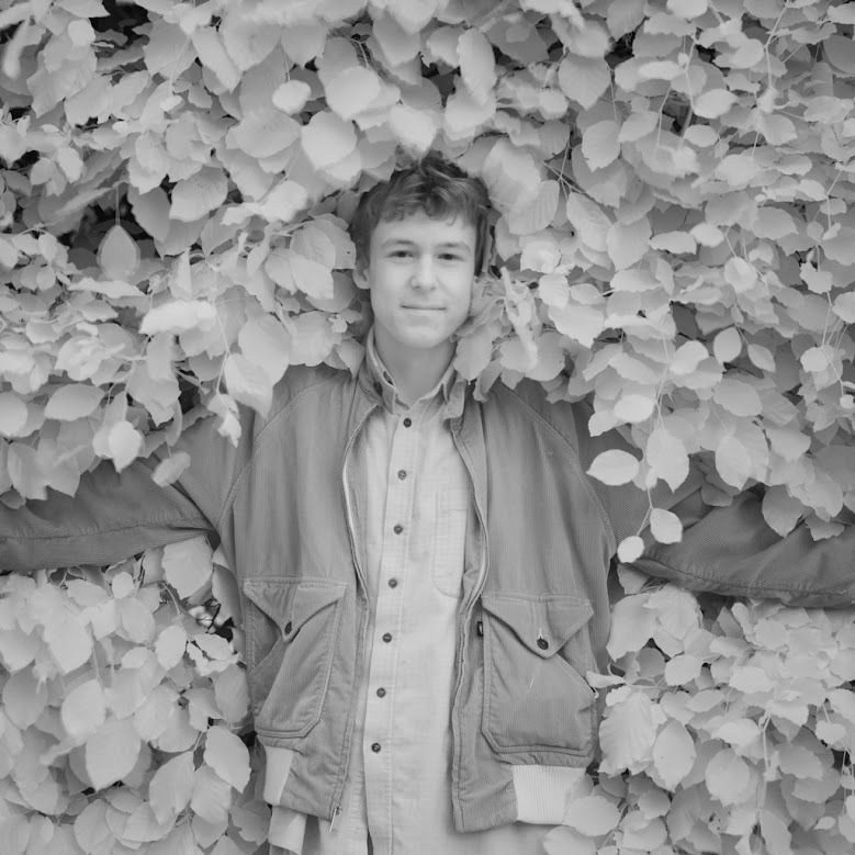 Bilden visar min pojkvän Ingemar som står mot en häck! Fotot är taget med ett 720 nm infrarött filter, konverterat till svartvitt taget på hans Fujifilm X-Pro2. Vi går ut på fotopromenader ganska ofta, jag är urkass på att fota men jag älskar att titta på när han tar sina bilder. Han är gatufotograf och jag beundrar hans passion och hans förmåga att se konst i de ögonblick som passerar så fort. Ibland när vi är ute och går märker jag inte när han stannar för att fota något, utan jag traskar vidare. Han ser potential i vad många hade tyckt är banalt, jag hoppas han aldrig tappar sin glöd."