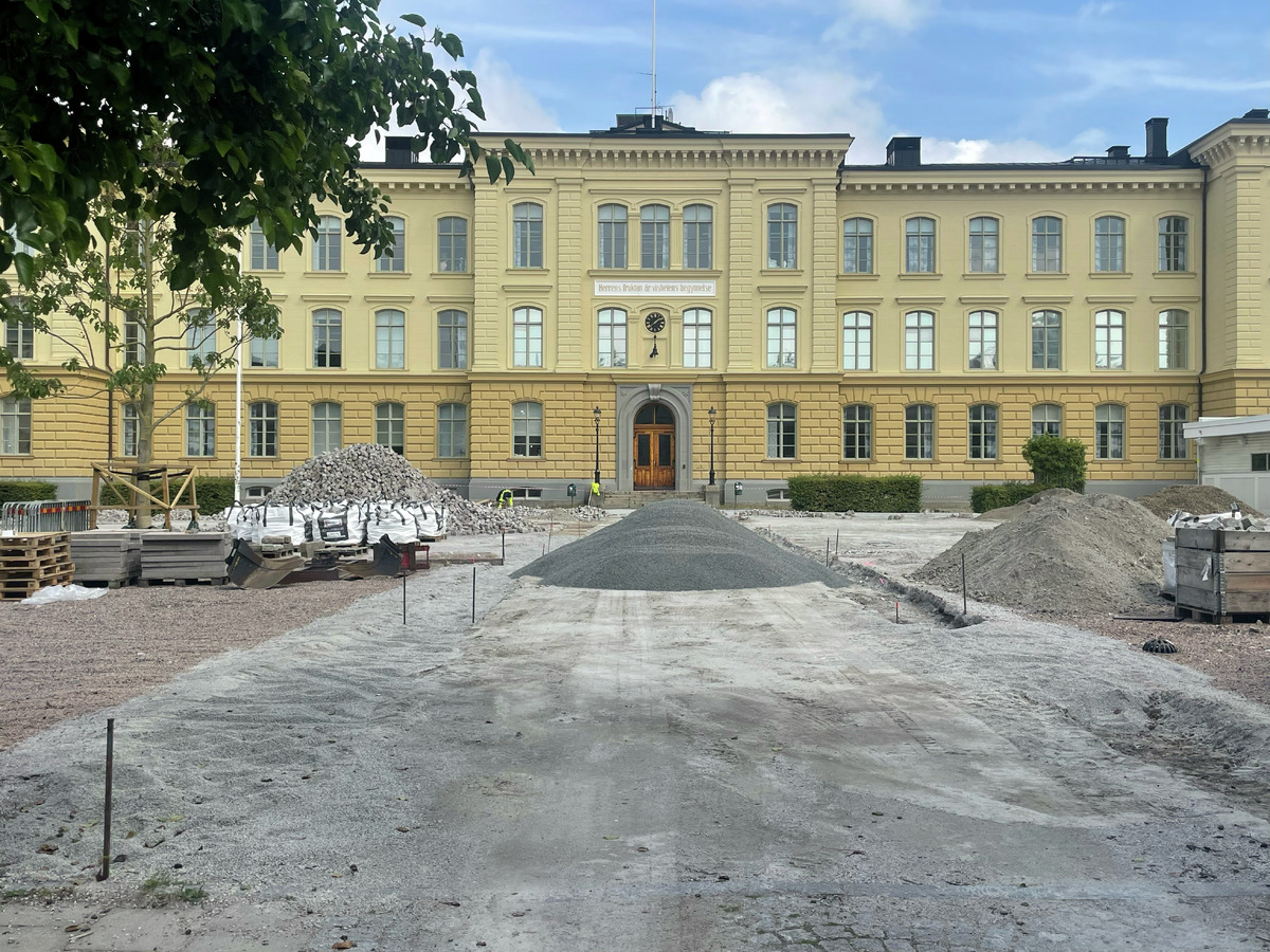 Malmö Latin skola där jag ska börja efter sommaren. Just nu lägger dem sten på marken så det är inte exakt så som det brukar se ut. Men skolan är den samma."
