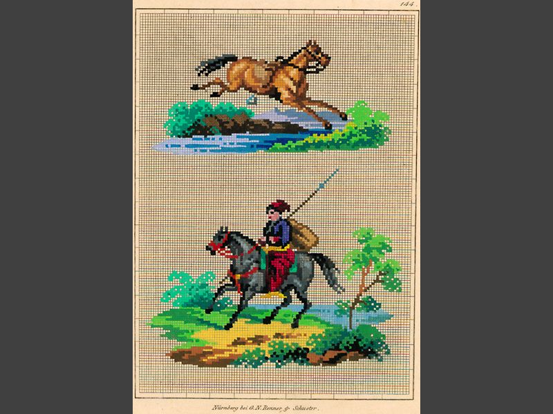 För korssöm, tryckt och handkolorerat.