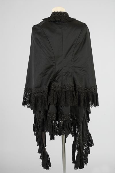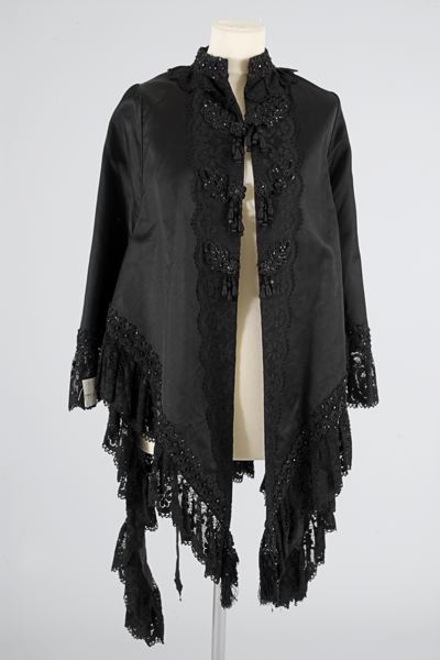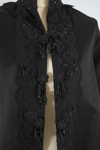 Dolmankrage (Cape) av svart sidenatlas garnerad med gramaner, pärlor,