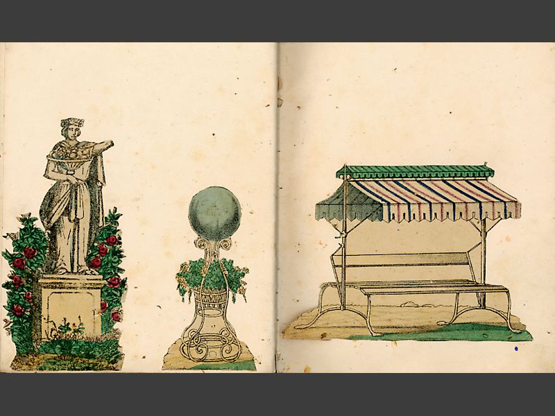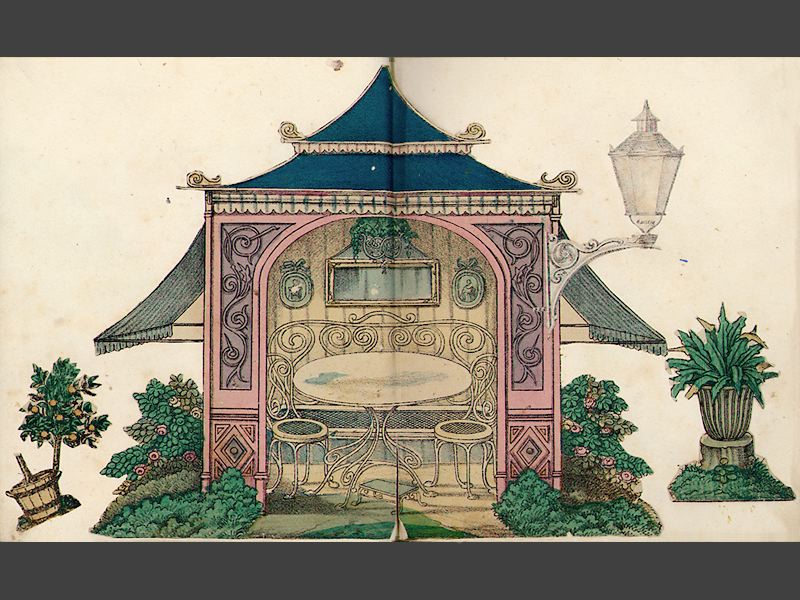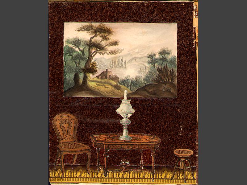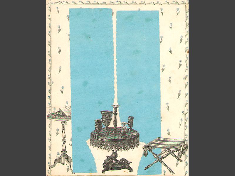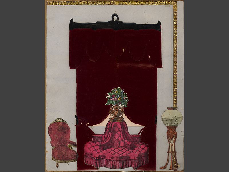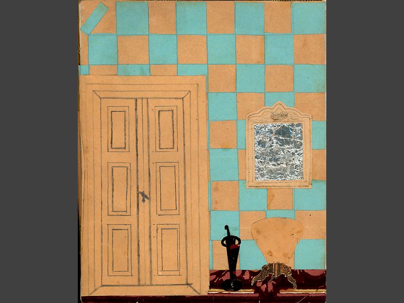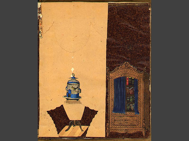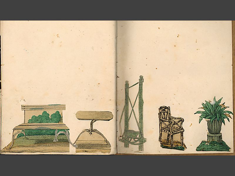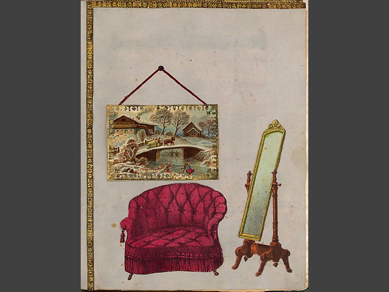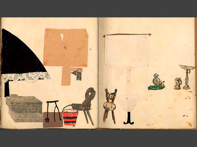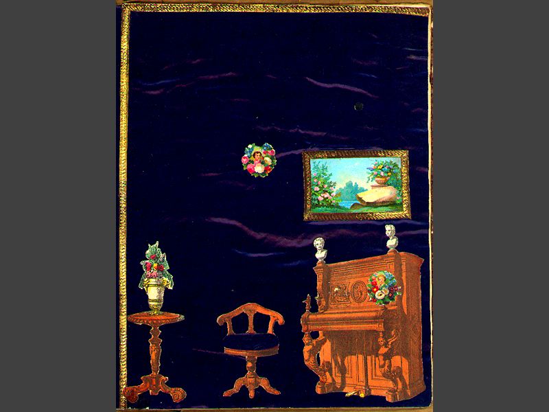 Pappersdockor, album med inklistrade rumsinteriörer, 15 st. samt 18 st.
