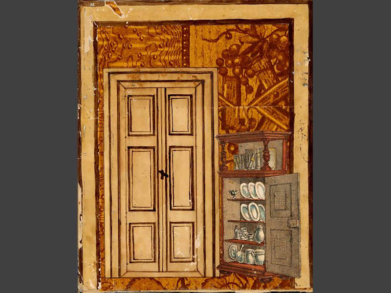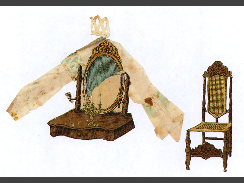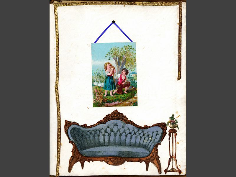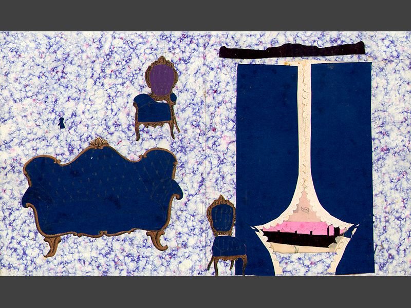 pappersdockor med rumsinteriörer, klippdocka