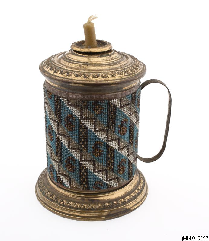 Vaxstapelhållare av pressad mässing och broderi av pärlor i flera