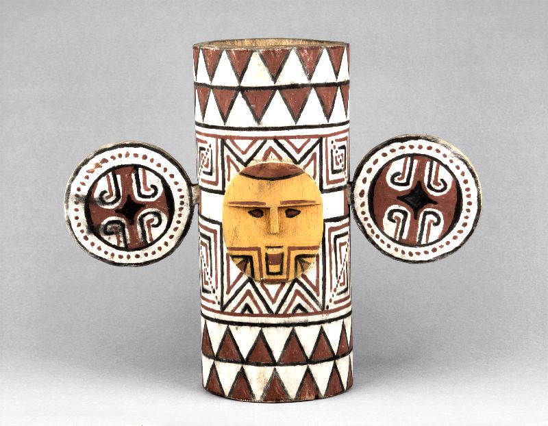 mask av rödbrunt barktyg. De användes i par. Båda är mycket lika, men