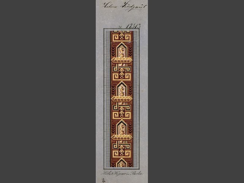 För korssöm, tryckt på blått papper och handkolorerat.
