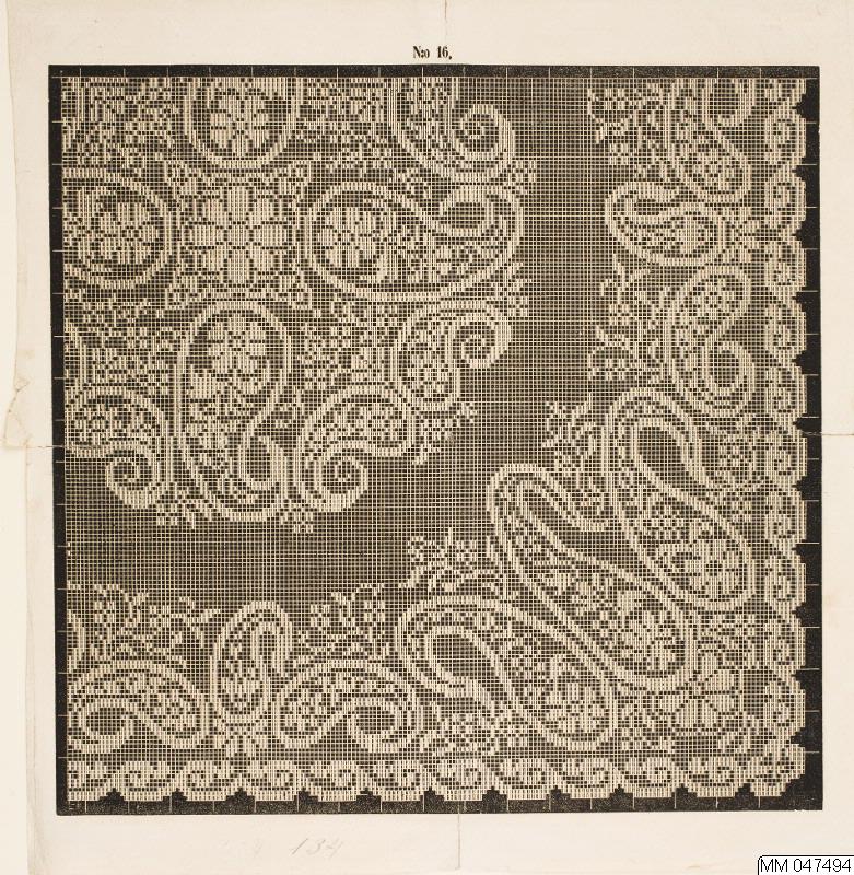 Broderimönster För filetträdning tryckt i svart och vitt.
