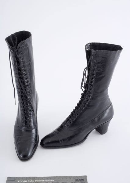 Kängor av svart lackskinn med skaft av chevreau, storlek i botten: