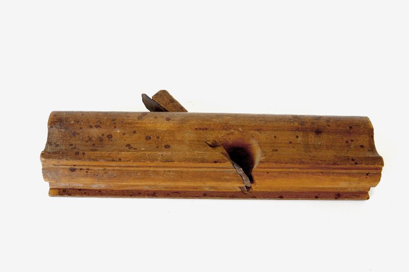 Listhyvel, av mellanbrunt trä med höger del av undersidan profilerad.