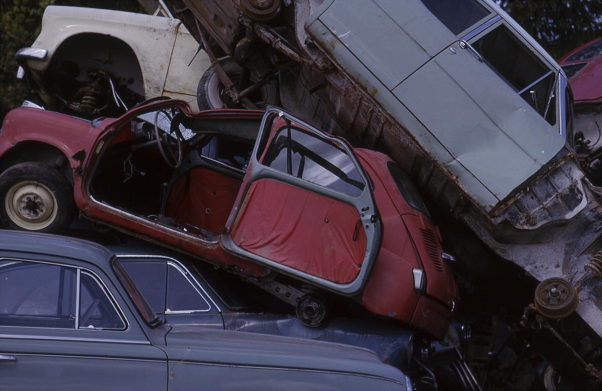 MM 062945:tema:024 :: bilar, bildelar, motorfordon, bil, skrot, bilskrot, miljöförstöring