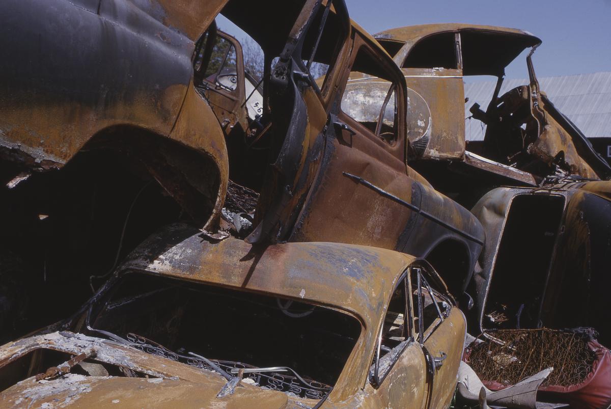 MM 062945:tema:043 :: bilar, bildelar, motorfordon, bil, skrot, bilskrot, fordon, miljöförstöring