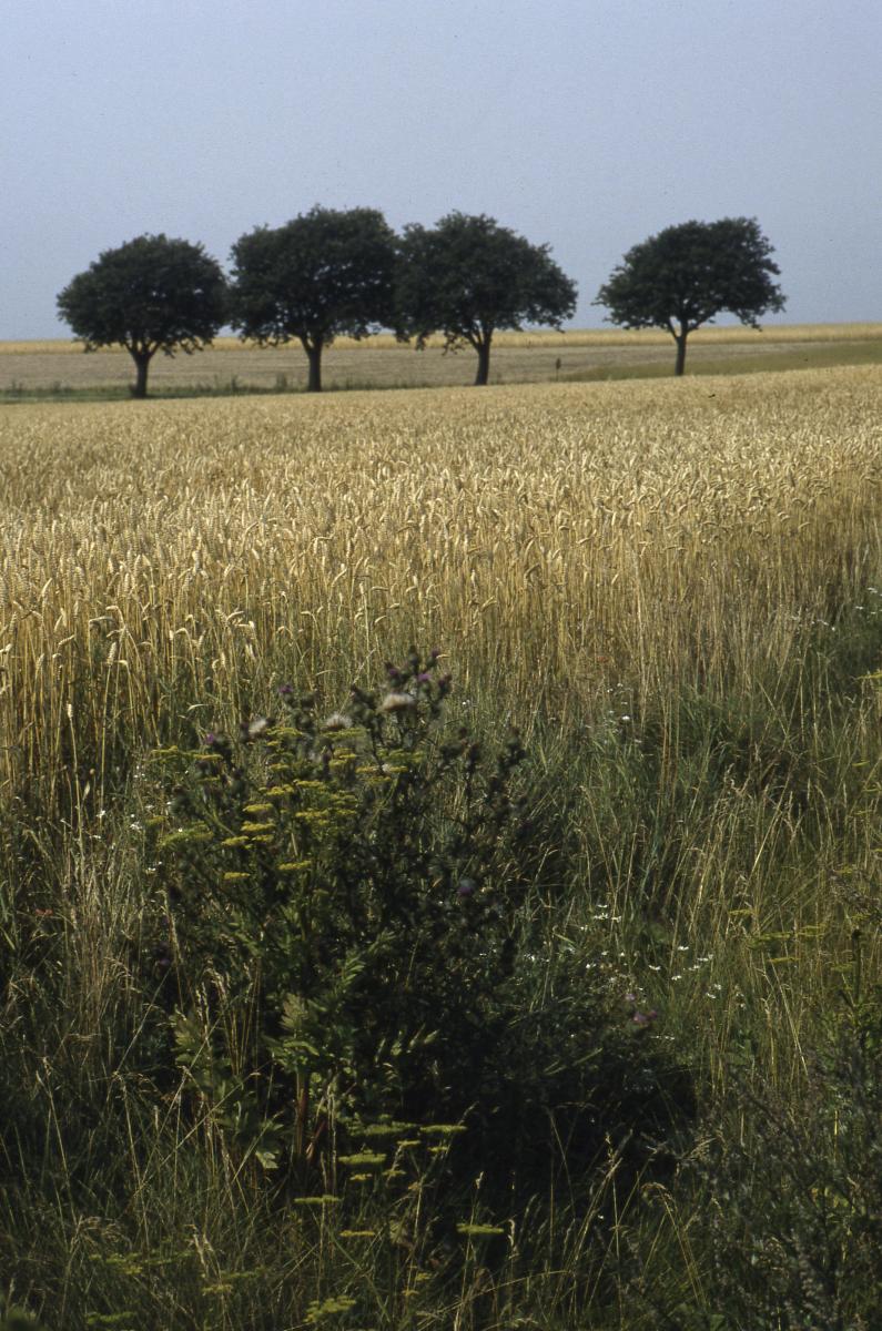 MM 062945:tema:534 :: fält, sädesslag, åker, blommor, blomma, träd