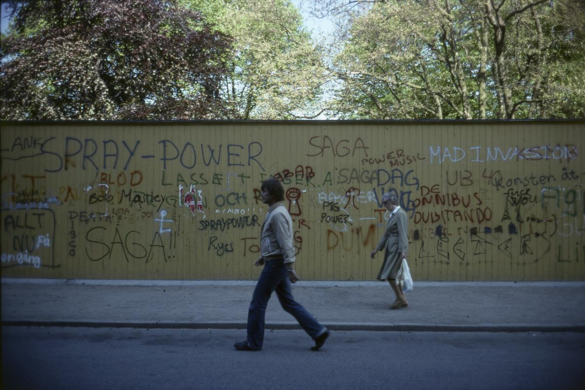 Malmö. Maj 1982. JUN 82. 9692. Graffitivägg.