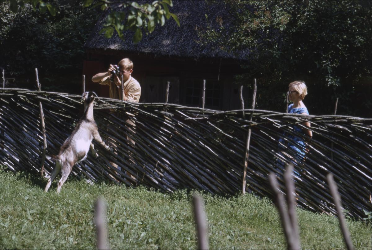 MM 062945:tema:791 :: getter, kvinna, hage, get, fotografera, fotograf, man, gärsgård