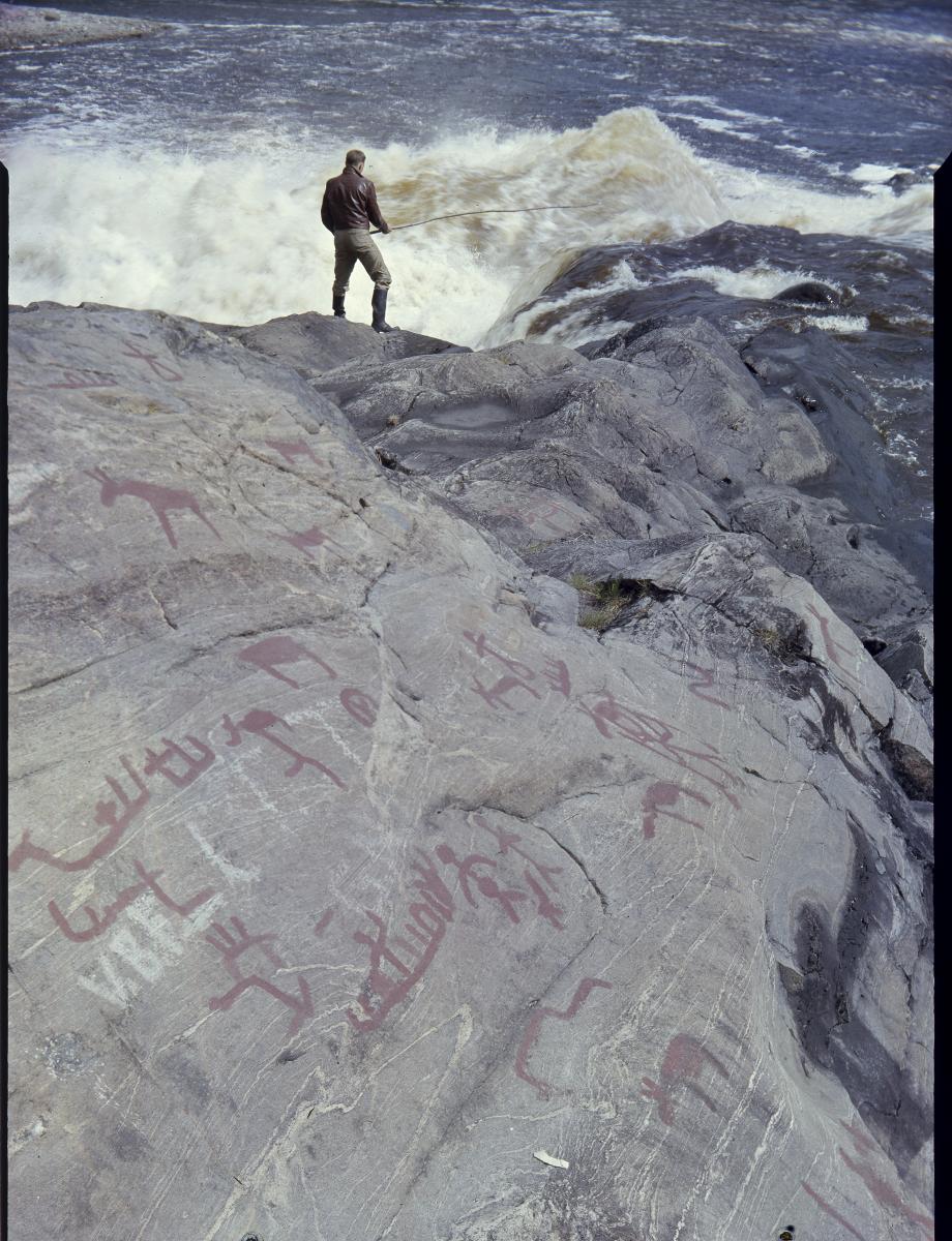 MM 062945:tema:909 :: vågor, våg, fiskare, älv, fiska, fors, man, män, fiske