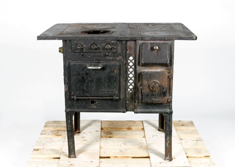 Gasspis med fyra plattor och ugn. 3 vridkranar. Märkt: Husqvarna Vapenfabrik No 212.