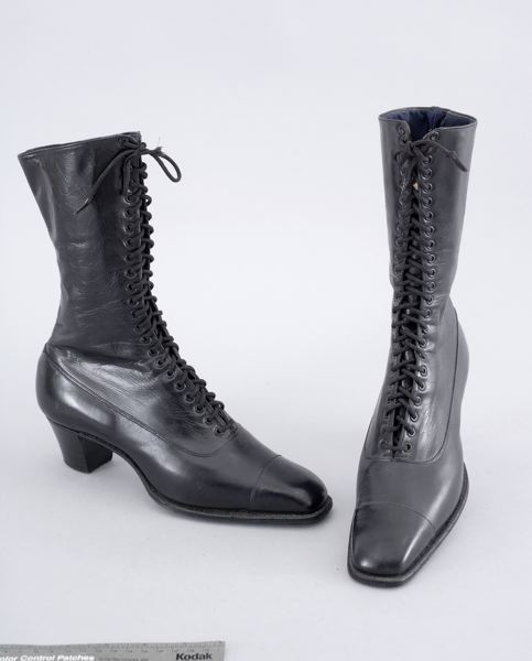 Kängor 1 par av svart chevreaux med 23 par snörhål. Foder av vitt tyg