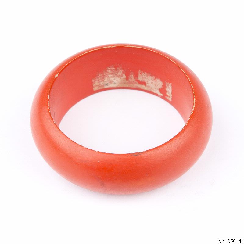 Servettring av rödmålat, svarvat trä.