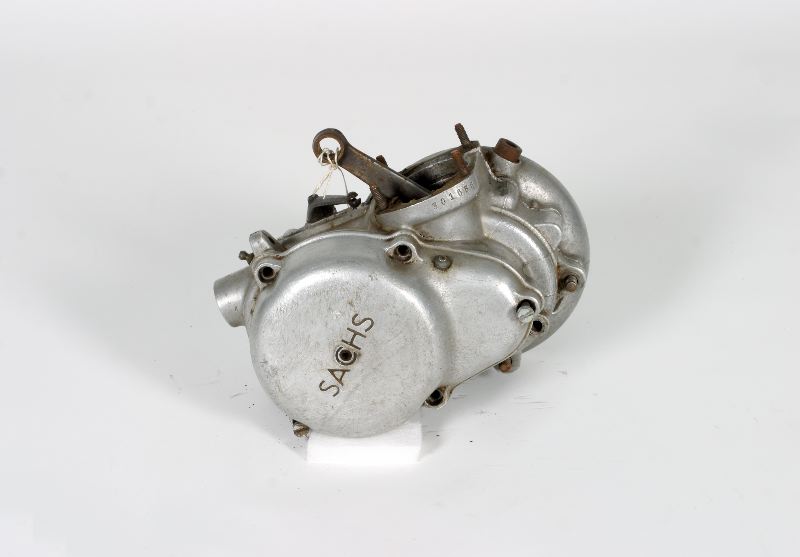Isärtagen 1-cylindrig luftkyld Sachsmotor. Ofullständig. Vevhus, cylinder och cylindertopp finns. Magnethjul av brons. Tekniska data enligt tillverkarskylt: Motornummer: 418800. 97/98 ccm. B 48 mm. S 54 mm. Br PS 2,25.