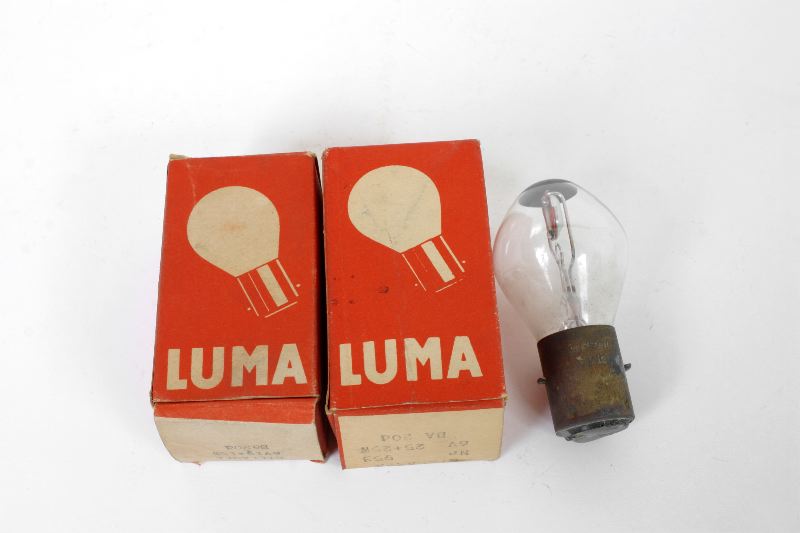 En ask märkt: Nr 953, 6 V 25+25W, BA 20d.