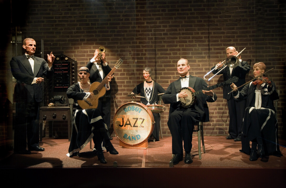Från robotjazzbandet. Violinist enlig fotografi från 1980-talet. Instrumentet saknas emellertid. Likaså huvudet.