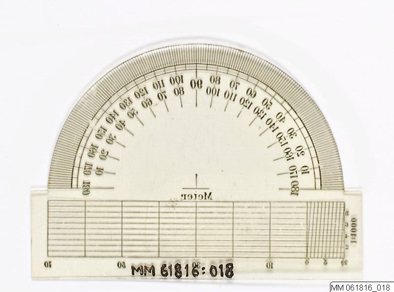 Gradskiva av transparent plast. Använd av Lennart Larsson i samband med flygningar. Meter-gradering.