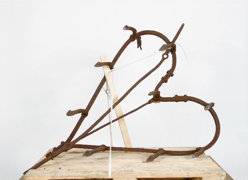 Två järnhjul på vardera sidan. Hjärtformad ställbar ram.