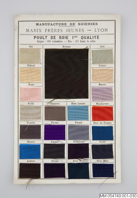 Sidenprover och en plansch (den senare trol. från våren 18 77) utan