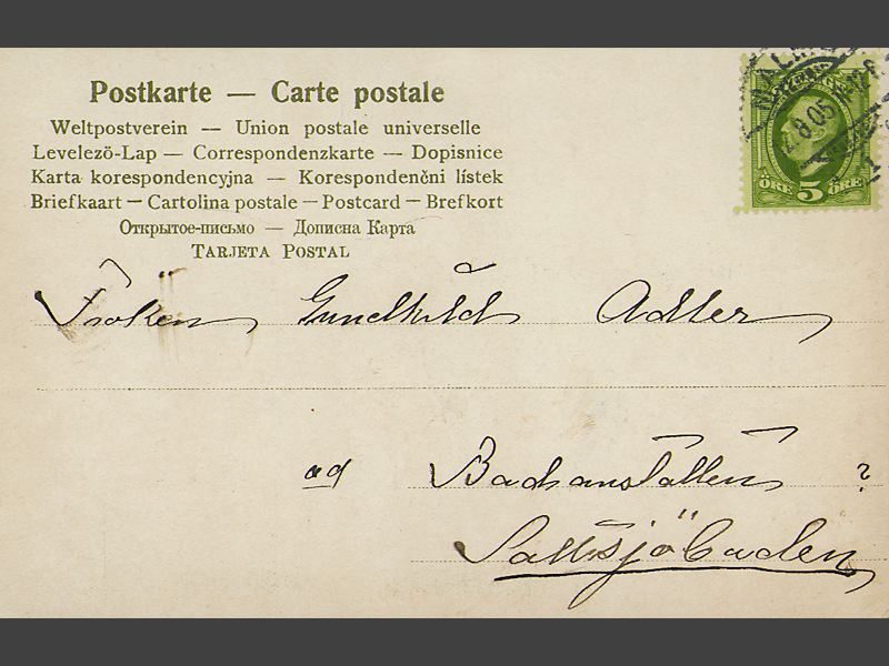 05" På baksidan "vykort" tryckt på olika språk samt adr.