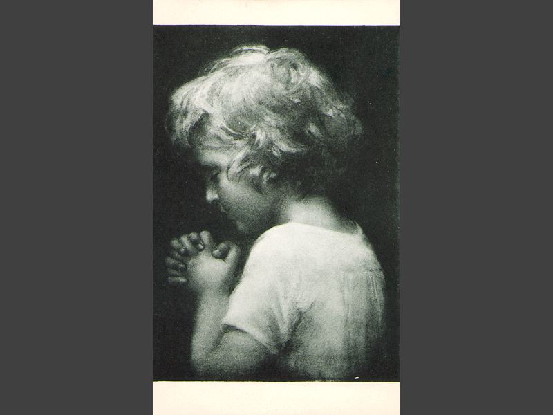 Reklamkort av papp med motiv av en bedjande liten flicka. Företagsnamnet tryckt i grönt på baksidan:" C.ALB.SÖDERBERG../FÖRGYLLERI-