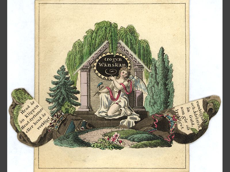 Minneskort av papp och färgtryck med dubbla sidor. Motiv med två