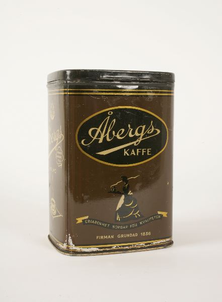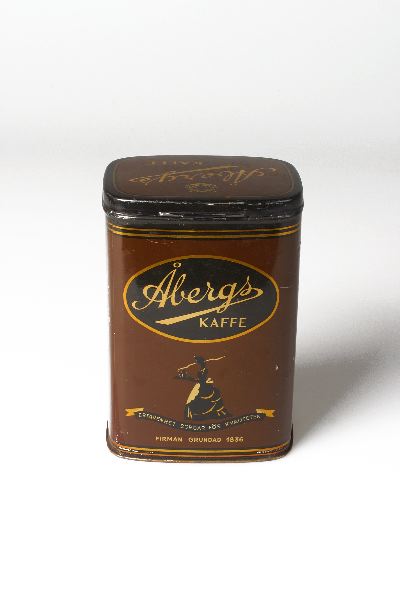 sidor. Ledat, platt, rektangulärt lock. Reklam för Åbergs kaffe.